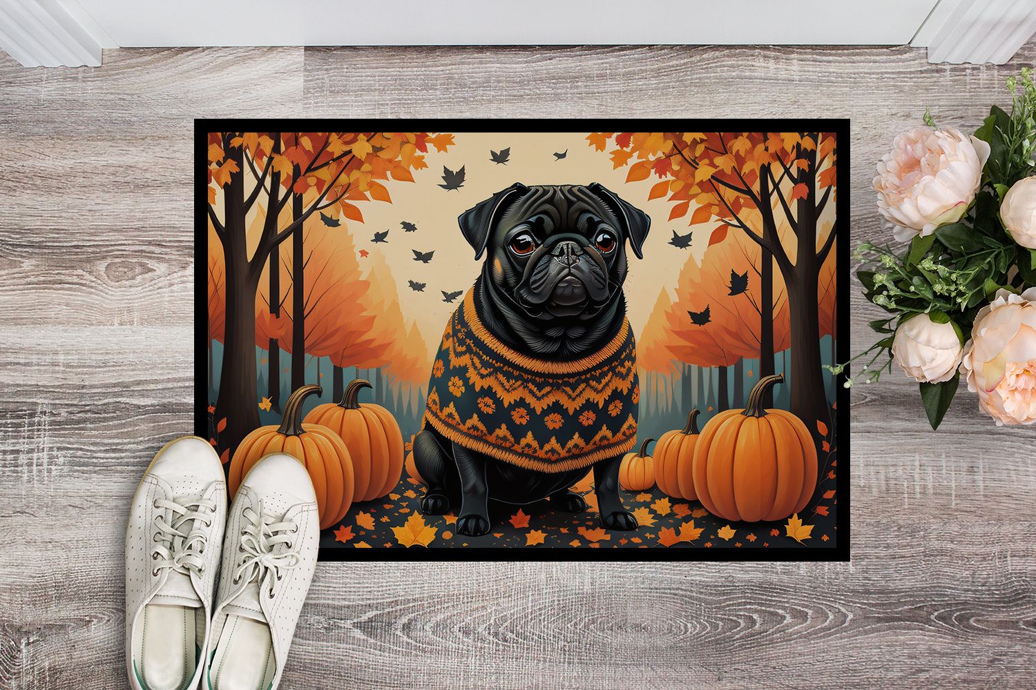 Black Pug Fall Doormat Front Door Mat Indoor Outdoor Rugs for Entryway, Non Slip Washable Low Pile, 24H X 36W