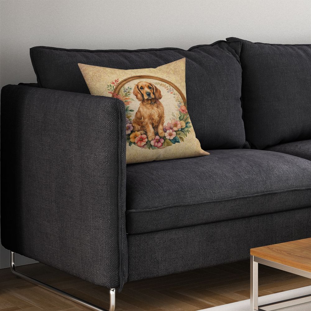 Home > Cocker Spaniel and Flowers Throw Pillow Machine Washable, Indoor Outdoor Decorative Pillow for Couch, Bed or Patio, 14Hx14W