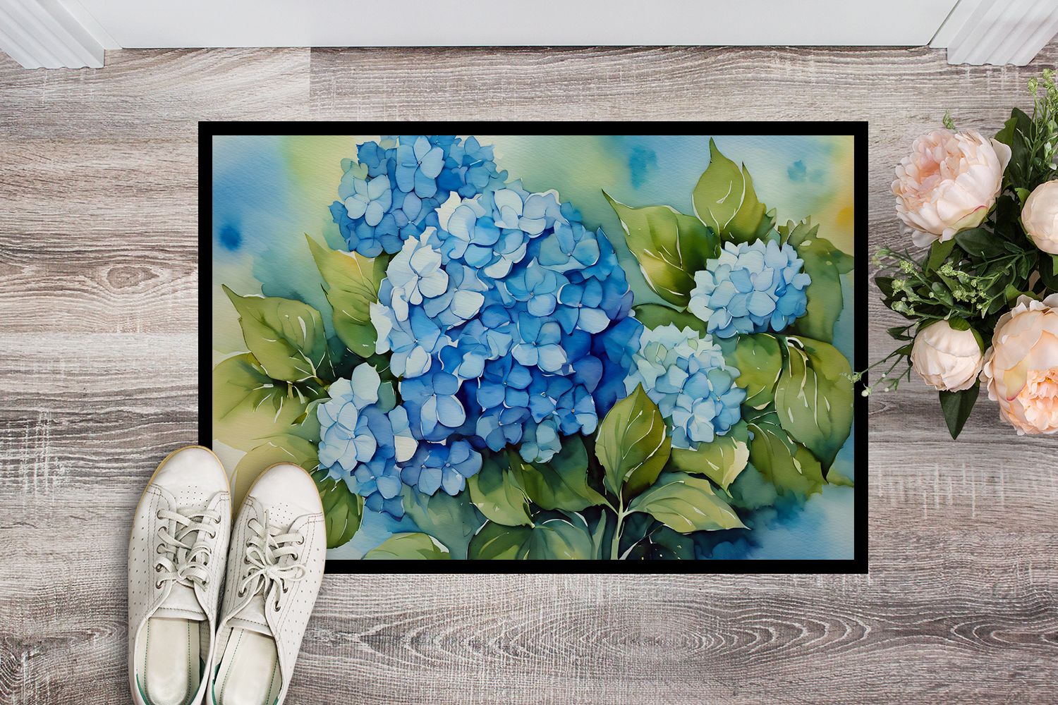 Home > Hydrangeas in Watercolor Doormat Front Door Mat Indoor Outdoor Rugs for Entryway, Non Slip Washable Low Pile, 24H X 36W