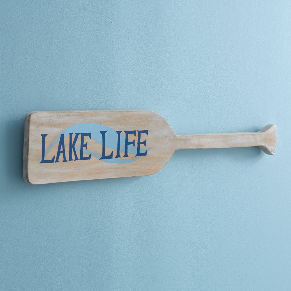 What's better than refreshing water, boat rides, and fun in the sun? Lake life is truly the best. Feature our oar on a wall to compliment your lake home. Item is fashioned of mango wood. To hang, use its two sawtooth hangers.